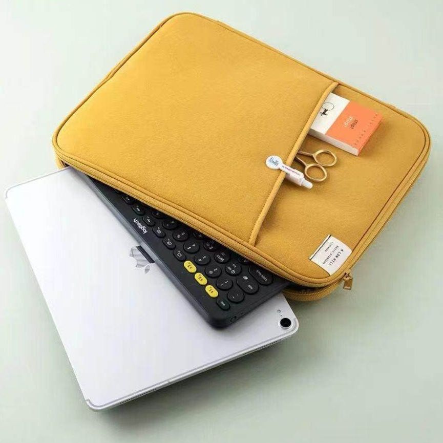 充電器や小物をすっきり整理できる多機能タブレットケースです。 内側には書類や文房具を収納できるポケットとメッシュポケットを配置し、タブレット本体も安全に保護します。 クッション性のある素材で大切な端末を衝撃から守り、ファスナー開閉で中身の飛び出しを防ぎます。 外側にも便利な収納ポケット付きで、持ち運びに最適なタブレットケースとして通勤通学やビジネスシーンで活躍します。
